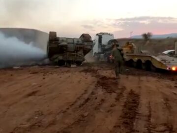 Israeli Tank get flipped because if bad instructions of the noob Israeli soldier